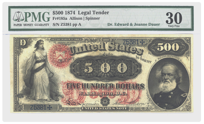 Fr#185a 1874 $500 Legal Tender