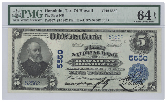 Fr#607 1902 $5 Honolulu, Ter. of Hawaii |