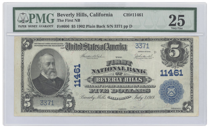 Fr#606 1902 $5 Beverly Hills, California |