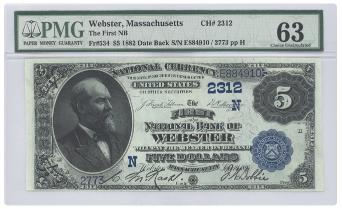 Fr#534 1882 $5 Webster, Massachusetts |