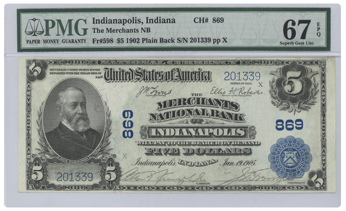 Fr#598 1902 $5 Indianapolis, Indiana |