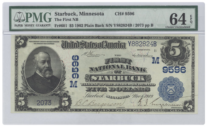 Fr#601 1902 $5 Starbuck, Minnesota |