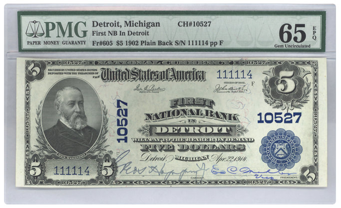 Fr#605 1902 $5 Detroit, Michigan |