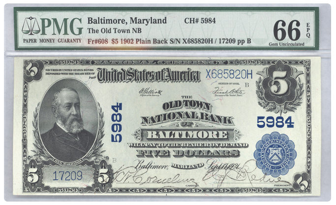 Fr#608 1902 $5 Baltimore, Maryland |