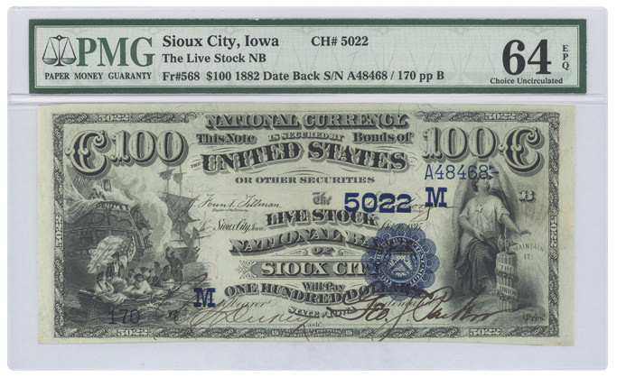 Fr#568 1882 $100 Sioux City, Iowa |