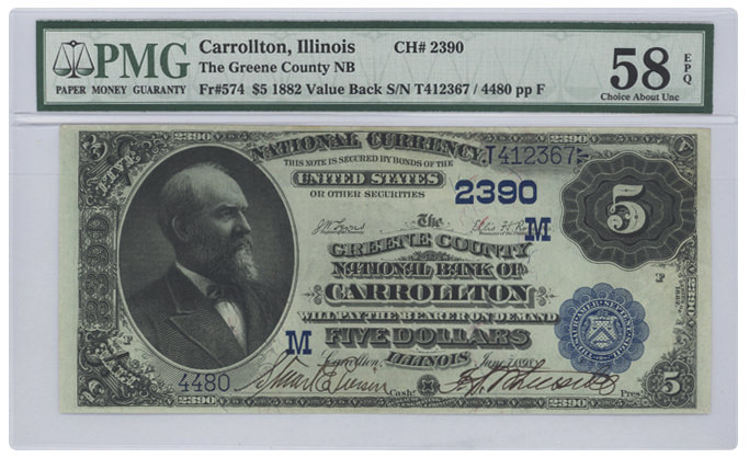 Fr#574 1882 $5 Carrollton, Illinois |