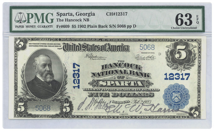 Fr#609 1902 $5 Sparta, Georgia |