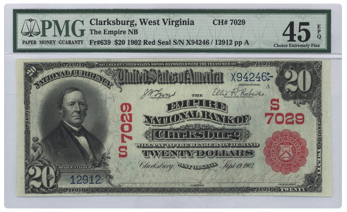 Fr#639 1902 $20 Clarksburg, West Virginia |