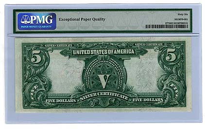 A note receiving the EPQ designation will have the letters ‘EPQ’ appearing to the right of the grade on the PMG label. Prior to mid-November 2006, the words, “Exceptional Paper Quality” appeared on the back of the PMG label to signify this designation. Notes graded prior to this change may be submitted for ReHolder Service to receive this new label format for a $12 fee.