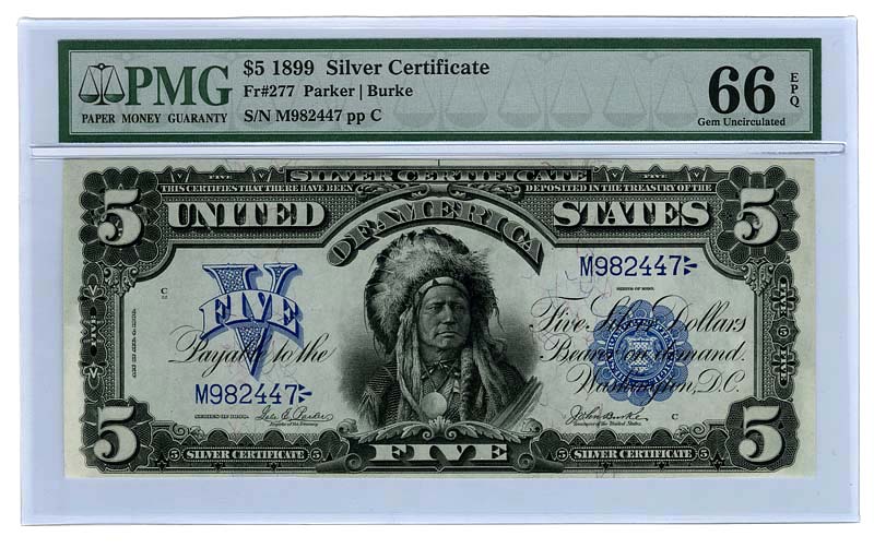 PMG uses the designation Exceptional Paper Quality (EPQ) for notes that, in the opinion of PMG graders, are original. By original, we mean that a note has not been physically, chemically, or materially processed to lend the appearance of a higher grade. PMG graders examine the embossing, inks, and overall integrity of each note to make the determination whether it will qualify for EPQ. Notes exhibiting normal wear-and-tear for their respective grades are eligible; normal wear may include factors affecting grade such as counting marks and folds. Notes receiving the EPQ designation must furthermore be unrestored. A restored note has had non-original material added to bring its appearance to a known or assumed state.