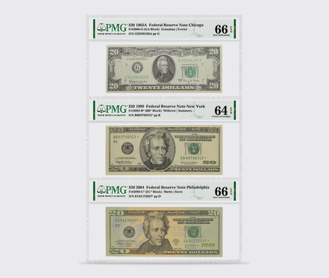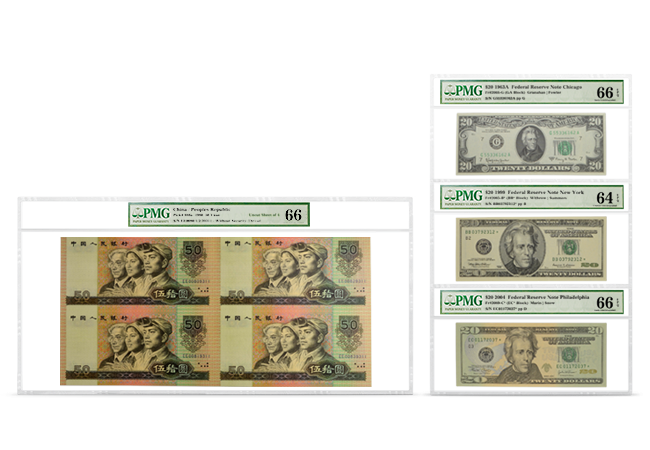 In addition, PMG Custom Holders can be used to archive special presentations of individual notes, giving collectors the flexibility to combine notes of different subjects, denominations and eras in a protective holder. Please note that eligibility for PMG Custom Holders is solely at PMG’s discretion.